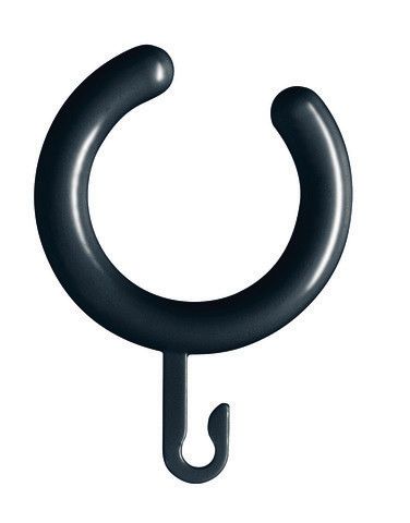 für Vorhangstangen 800.34.., 801.34.., 805.34.., offene Ringe mit kleinem Haken, außen ø 60 mm, innen ø 40 mm, 10 mm stark, aus Polyamid mit Ringenden aus POM