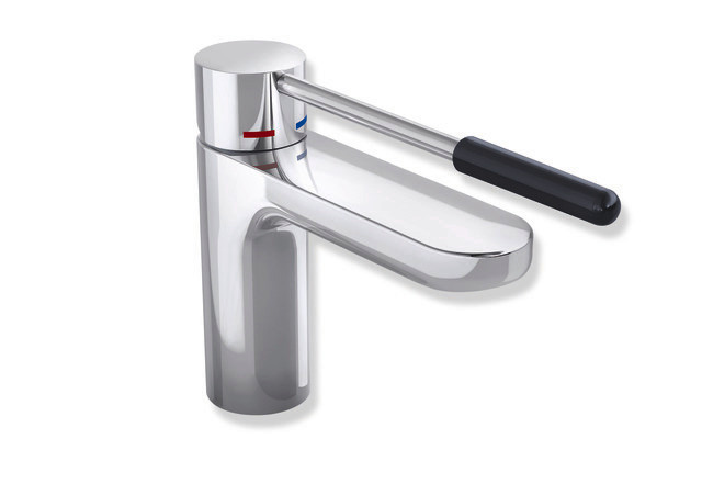 HEWI Waschtisch-Einhebelmischer AQ 800 K verchromt, Griff rubinrot, rund, Ausladung 159mm, verlängerter Hebel W338672