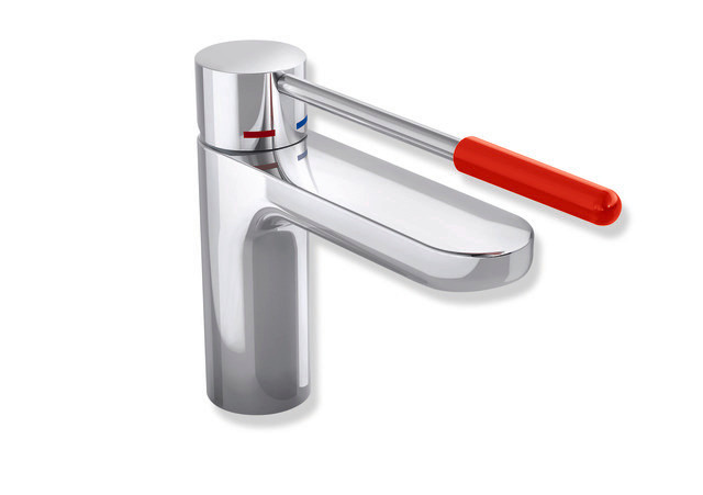 HEWI Waschtisch-Einhebelmischer AQ 800 K verchromt, Griff rubinrot, rund, Ausladung 159mm, verlängerter Hebel W338672