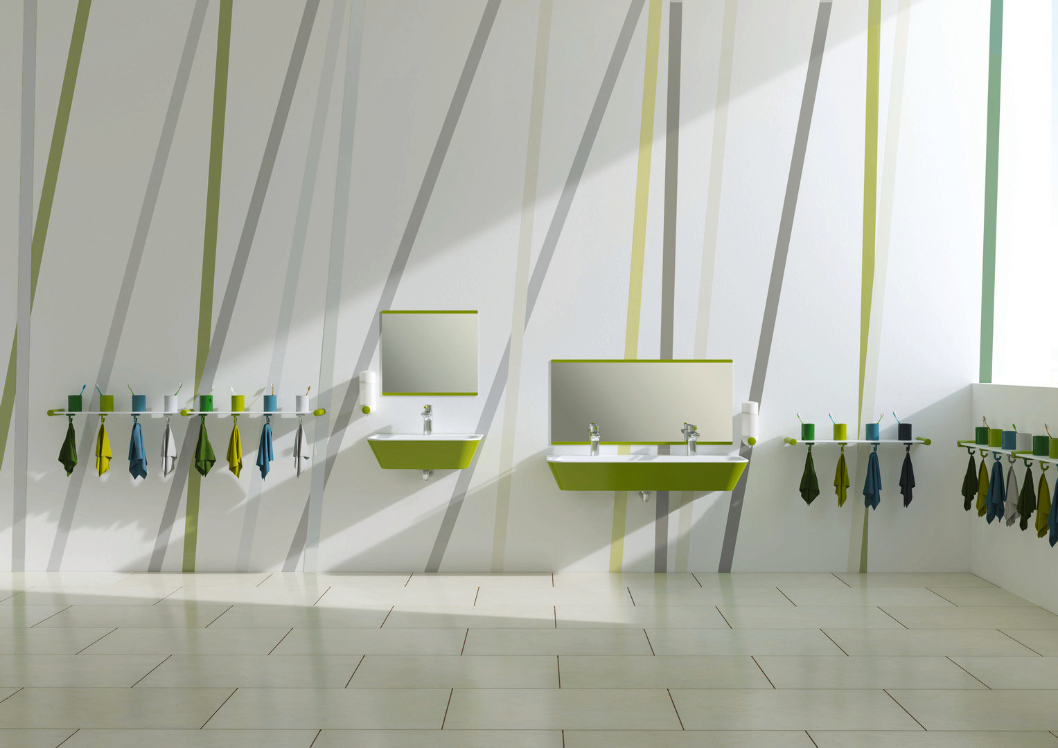 HEWI Zahnputzbecherleiste mit Handtuchhaken, 4 Plätze, apfelgrün W378090