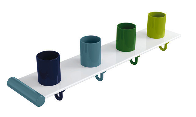 HEWI Zahnputzbecherleiste mit Handtuchhaken, Erweiterungsset, 4 Plätze, aquablau W378104