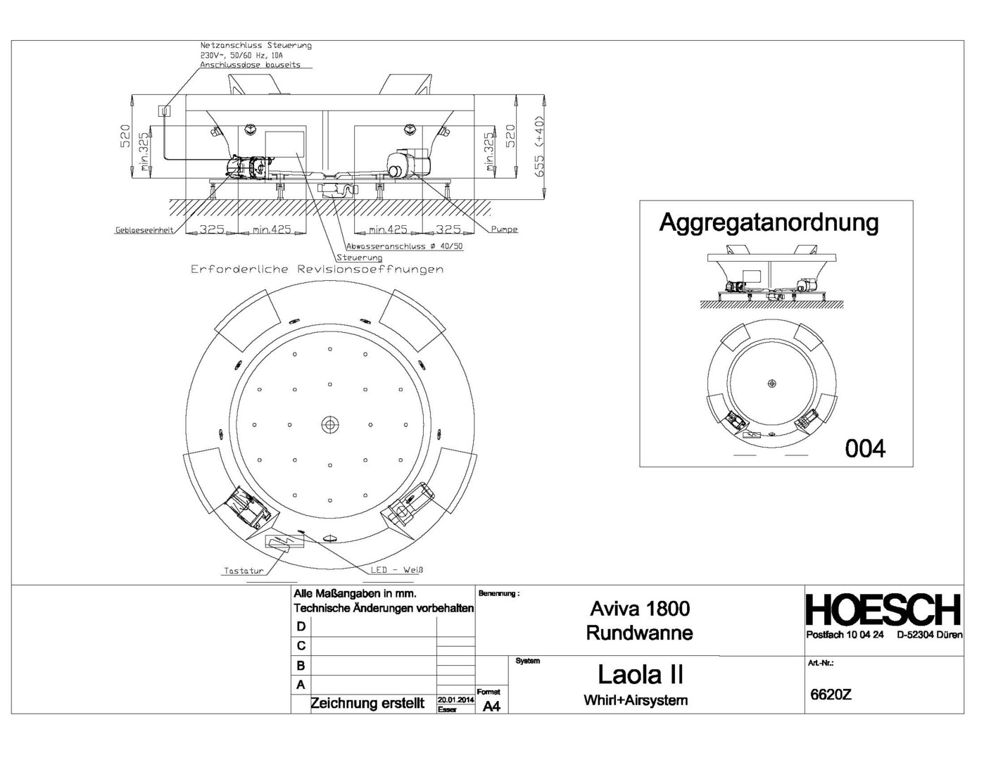 HO Whirlwanne Aviva Rund 1800 mit System Laola II Whirl+Air Weiß/Chrom/Motor rechts/links