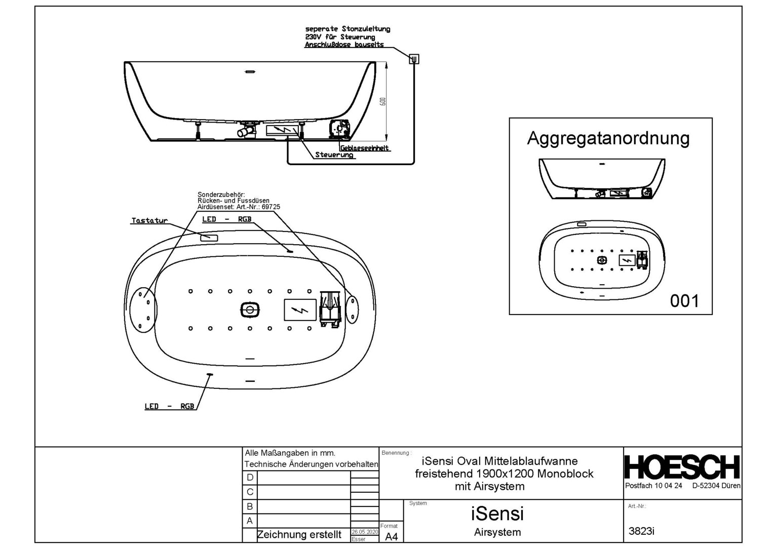 | Bedienung | Elektronisch auf dem Wannenrand |