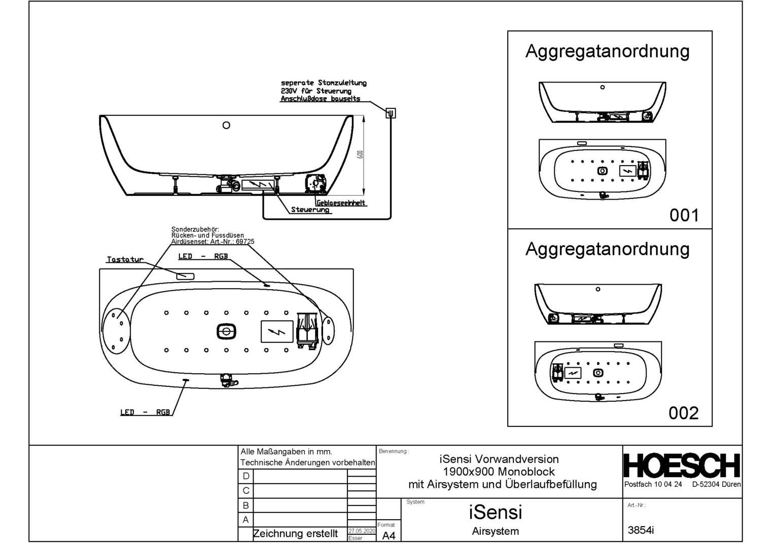 | Bedienung | Elektronisch auf dem Wannenrand |