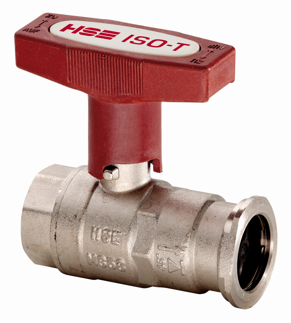 HS Iso-T-Pumpen-Kugelhahn 1479 1 1/2"x1", Durchgang, Schwerkraftbremse, verlängerter T-Griff rot W811417