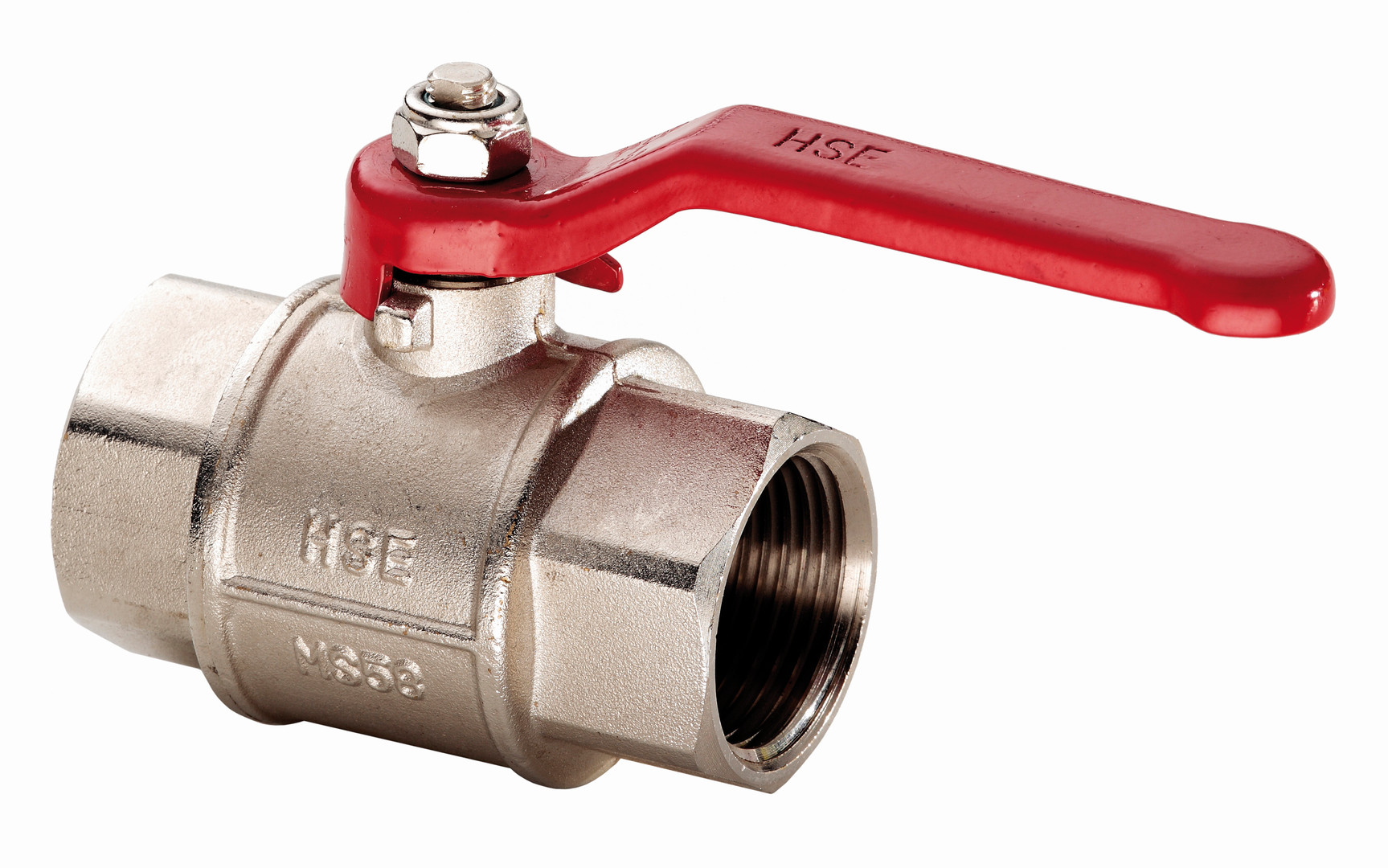 HS Kugelhahn 1450 1/2", Durchgang, Hebelgriff rot, Schwermodell, matt verchromt W811309