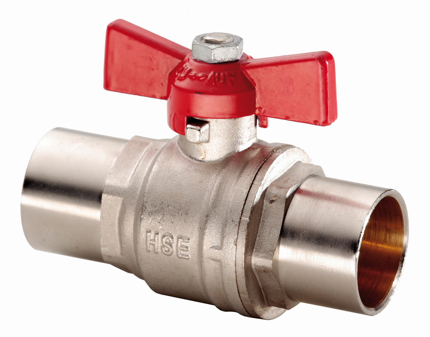 HS Löt-Kugelhahn 1473 28 mm, Durchgang, Flügelgriff, matt verchromt