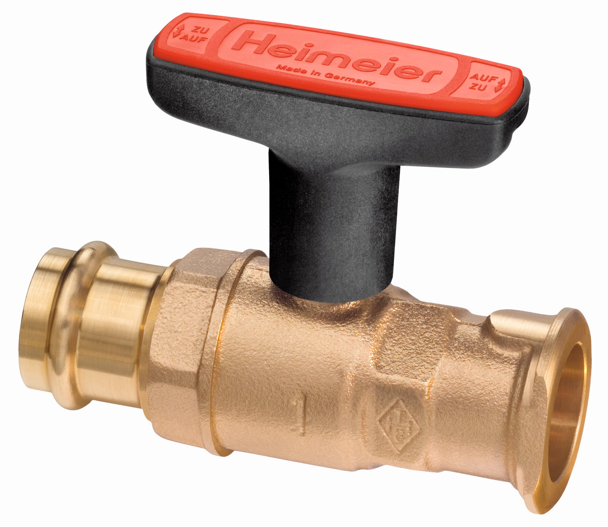 Heimeier Pumpen-Kugelhahn Globo P Rp 1 x 1", Pressanschluss mit SC-Contur, ohne Schwerkraftbremse, Rotguss