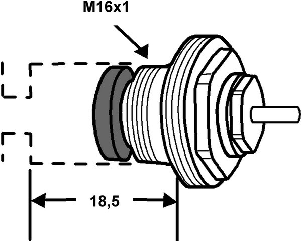 M16x1 Länge 18,5, vorgesehen für Ventilserien RVO-A/m72-A DN 10-20 (nach 1973), S-74, RADIETT-U, RENOVETT-U, AGA-TP/Thermal Perfect, RADIFIX/RADIFLEX, RVT, RVT-F/RVT-F 2 S Axialventil (vor 1986), RVT-F/RVT-F 2 S Durchgang, zur Umrüstung von manuellen Ventilen auf Thermostatbetrieb, die Oberteile haben ein passendes Anschlussgewinde