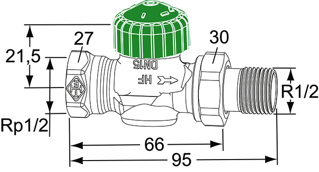 mit automatischer Durchflussregelung für große Heizkörper und kleine Temperaturspreizungen, der erforderliche Durchfluss der einzelnen Heizkörper wird direkt am Thermostat-Ventilunterteil eingestellt, Gehäuse aus korrosionsbeständigem Rotguss, vernickelt, KEYMARK-zertifiziert und geprüft nach KIN EN 215, Serie D, mit Niro-Stahlspindel und doppelter O-Ring-Abdichtung, der Durchfluss ist von 30-300 l/h stufenlos einstellbar, das Ventil regelt den Durchfluss unabhängig vom Differenzdruck, das komplette Thermostat-Oberteil kann mit dem Heimeier-Montagegerät ohne Entleeren der Anlage ausgewechselt werden, Anschluss Innengewinde für Gewinderohr, oder in Verbindung mit Klemmverschraubungen für Kupfer-, Präzisionsstahl- oder Verbundrohr, die Ausführung mit Außengewinde ermöglicht mit den entsprechenden Klemmverschraubungen zusätzlich den Anschuss von Kunststoff-, Kupfer-, Präzisionsstahl- oder Verbundrohr, max. Betriebstemperatur 120 °C, Bauschutzkappe oder Stellantrieb 100 °C, min. Betriebstemperatur -10 °C, min. Differenzdruck 30-300 l/h: 20 kPa, max. Differenzdruck 60 kPA, Nennweite DN 15, Nenndruck PN 10, Maß H1 21,5 mm bei Auflagefläche Thermostat-Kopf oder Stellantrieb, SW1 DN 15/27 mm, SW2 DN 15/30 mm