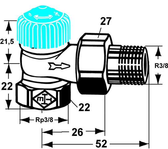 die Thermostat-Ventilunterteile ohne Voreinstellung mit besonders geringem Widerstand, werden z. B. in Zweirohr-Niedertemperaturheizungen mit kleiner Temperaturspreizung, Schwerkraftanlagen und konventionellen Einrohr-Heizungsanlagen eingesetzt, Anwendungsbereich Heizungs- und Kühlanlagen, Regeln, Absperren, DN 10-32, PN 10, max. Betriebstemperatur 120 °C, mit Bauschutzkappe oder Stellantrieb 100 °C, min. Betriebstemperatur -10 °C, Ventilgehäuse korrosionsbeständiger Rotguss, Thermostat-Oberteil Messing, das komplette Thermostat-Oberteil kann mit dem Montagegerät ohne Entleeren der Anlage ausgewechselt werden (DN 10, DN 15), Spindel Niro-Stahlspindel mit doppelter O-Ring-Abdichtung, der äußere O-Ring ist unter Druck auswechselbar, Ventilgehäuse und Anschlussverschraubung vernickelt, Bauschutzkappe blau, Stopfbuchse blau (DN 10, DN 15), KEYMARK-zertifizierte Thermostat-Köpfe und Thermostat-Ventilunterteile, das Gehäuse mit Innengewinde ist ausgelegt für den Anschluss an Gewinderohr, oder in Verbindung mit Klemmverschraubungen an Kupfer- Präzisionsstahl- oder Verbundrohr (nur DN 15), die Ausführung mit Außengewinde ermöglicht mit den entsprechenden Klemmverschraubungen zusätzlich den Anschluss von Kunststoffrohr, SW1 DN 10/22 mm, DN 15/27 mm, DN 20/32 mm, DN 25/41 mm, DN 32/ 49 mm, SW2 DN 10/27 mm, DN 15/30 mm, DN 20/37 mm, DN 25/47 mm, DN 32/52 mm, Maße H1 DN 10/15/20 21,5 mm, DN 25/32 23 mm bei Auflagefläche Thermostat-Kopf oder Stellantrieb