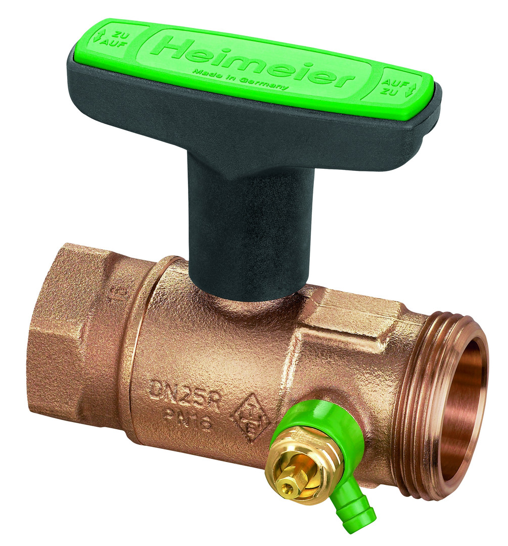 Heimeier Trinkwasser-Kugelhahn Globo D DN 25, Rp 1 x G 1 1/4 AG, mit Entleerung, Rotguss W806887
