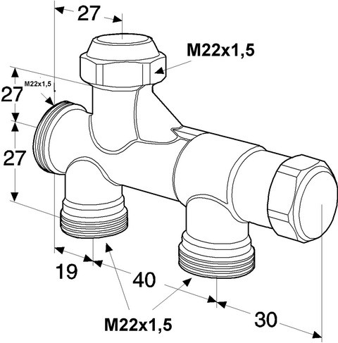 Heimeier Verteiler FLOWRETT/RSD 821 M 22 x 1,5, DN 10, Einrohr
