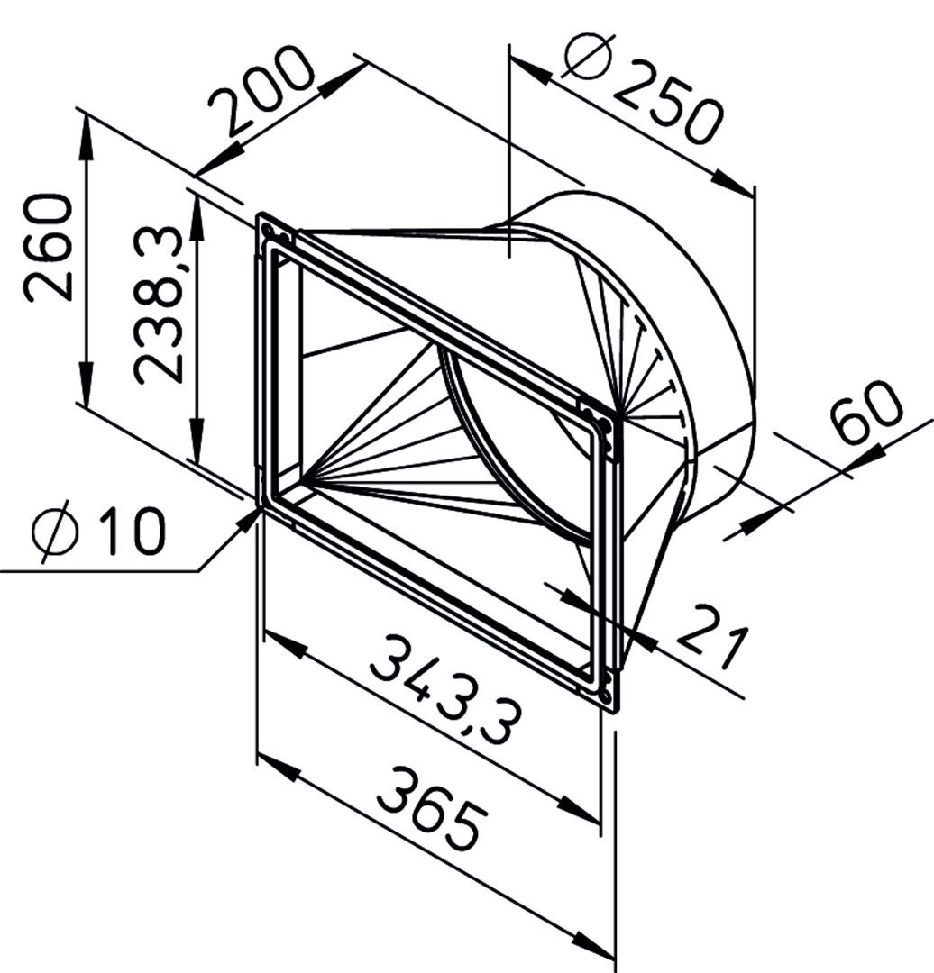 Helios AIR1-ÜS XH 1000 Übergangsstück rechteckig-rund zu AIR1 XH 1000 mit Rohranschluss DN 250