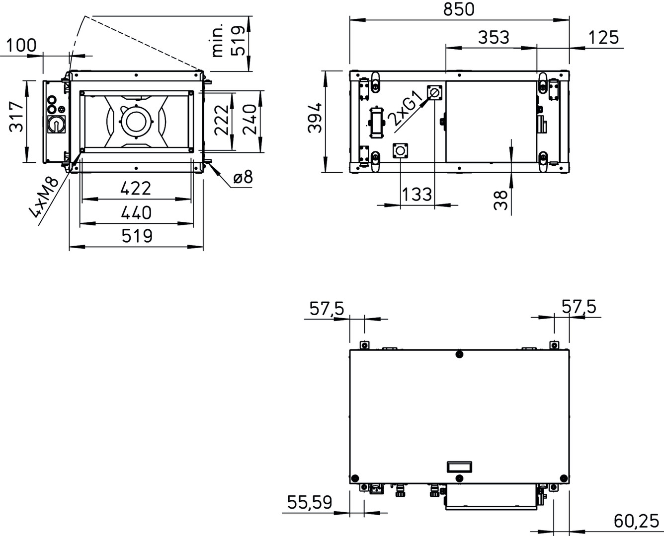 Helios ALB EC 40/20 WW Außenluft-Box mit WW-Heizreg. und Luftfilter 1-PH 230V 50/60Hz rechteckig