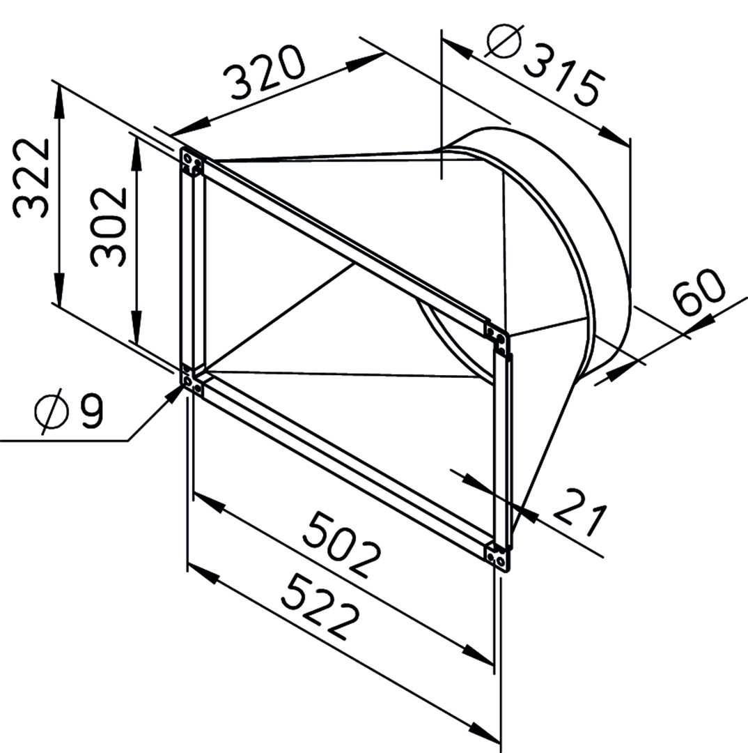 Helios ALB-ÜS 50/30 Übergangstück - symmetrisch für ALB 220/4/50/30 WW/EH auf Rohranschluß DN 315