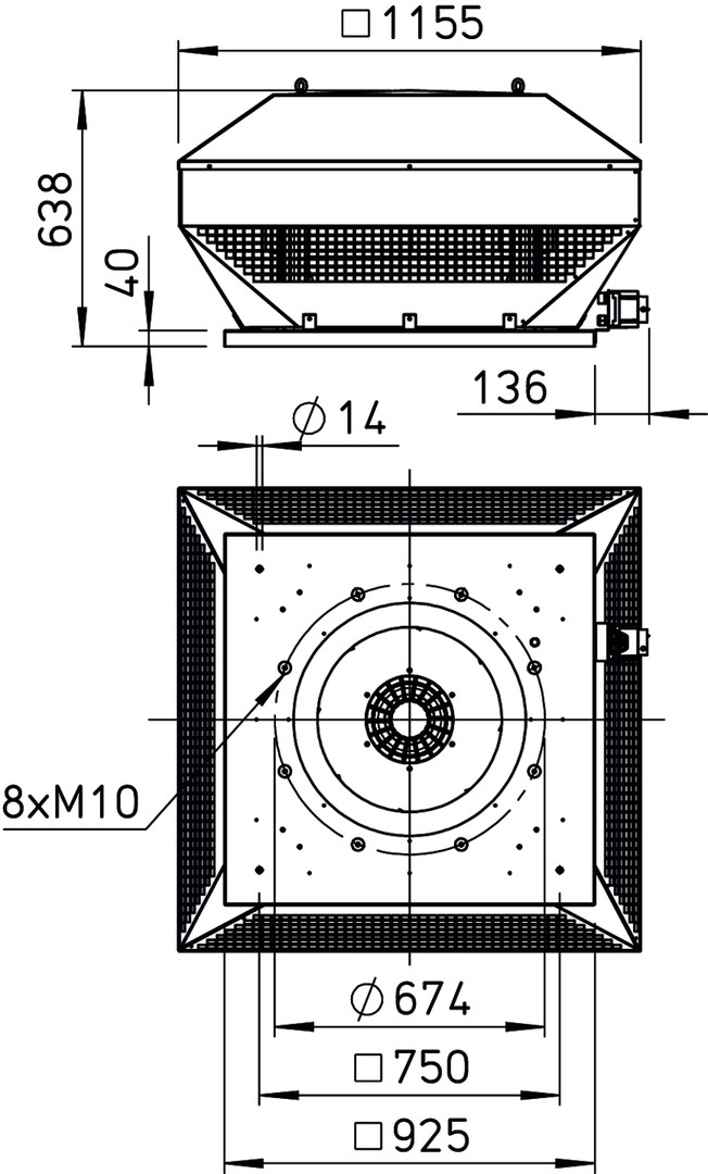 Helios RDD 630/6 Ex Radial-Dachventilator, 3-PH horizontal, 400 V, 6-polig II 3G c IIB + H2 T3 Gc