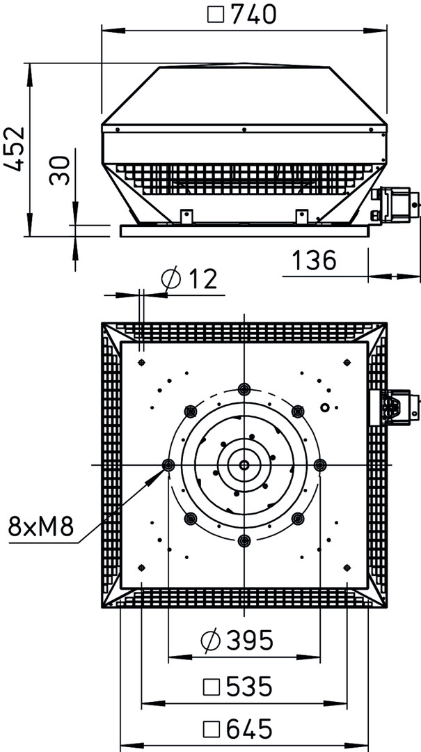 Helios RDD EC 355 Radial-Dachventilator, 3-PH horizontal, 400 V, EC-Motor