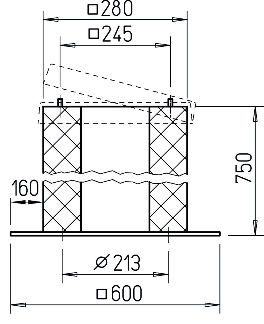 zur saugseitigen Geräuschdämpfung, alle Metallteile aus verzinktem Stahlblech, zur Montage auf Flachdächern in gleicher Weise wie ein Flachdachsockel