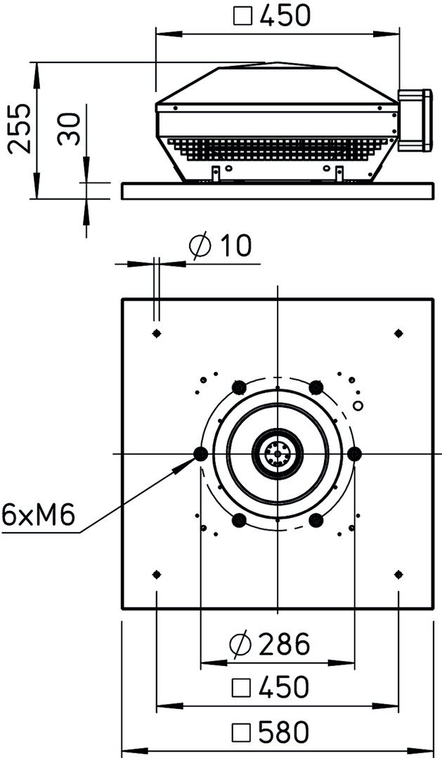 Helios VDD 250/4 Ex Dachventilator vertikal 3-PH, 400 V, 4-polig II 3G c IIB + H2 T3 Gc