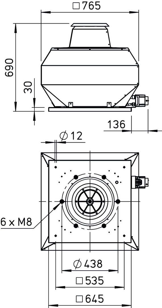 Helios VDD 400/4 T120 Dachventilator vertikal 3-PH, 400 V, 4-polig bis 120 Grad Fördermitteltemp.
