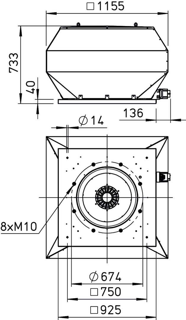 Helios VDD 630/6 Dachventilator vertikal 3-PH, 400 V, 6-polig