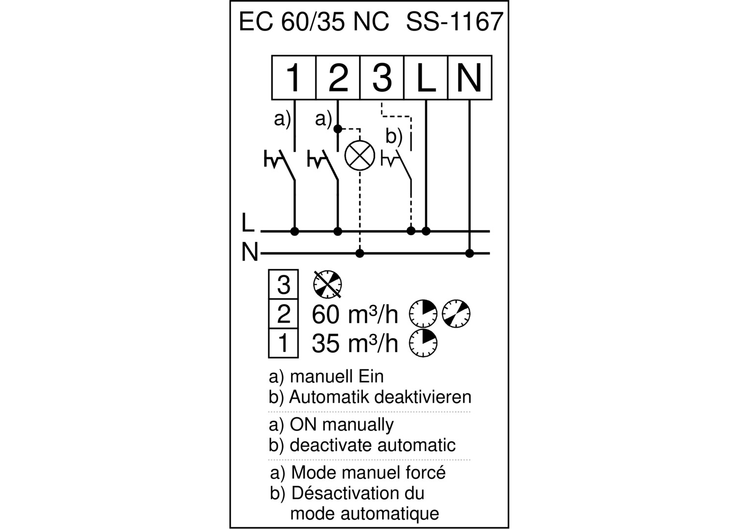 Helios Ventilator-Einsatz ELS NC EC 60/35 NC, codierbar, 2 Stufen, integrierter Nachlauf, Bad oder WC