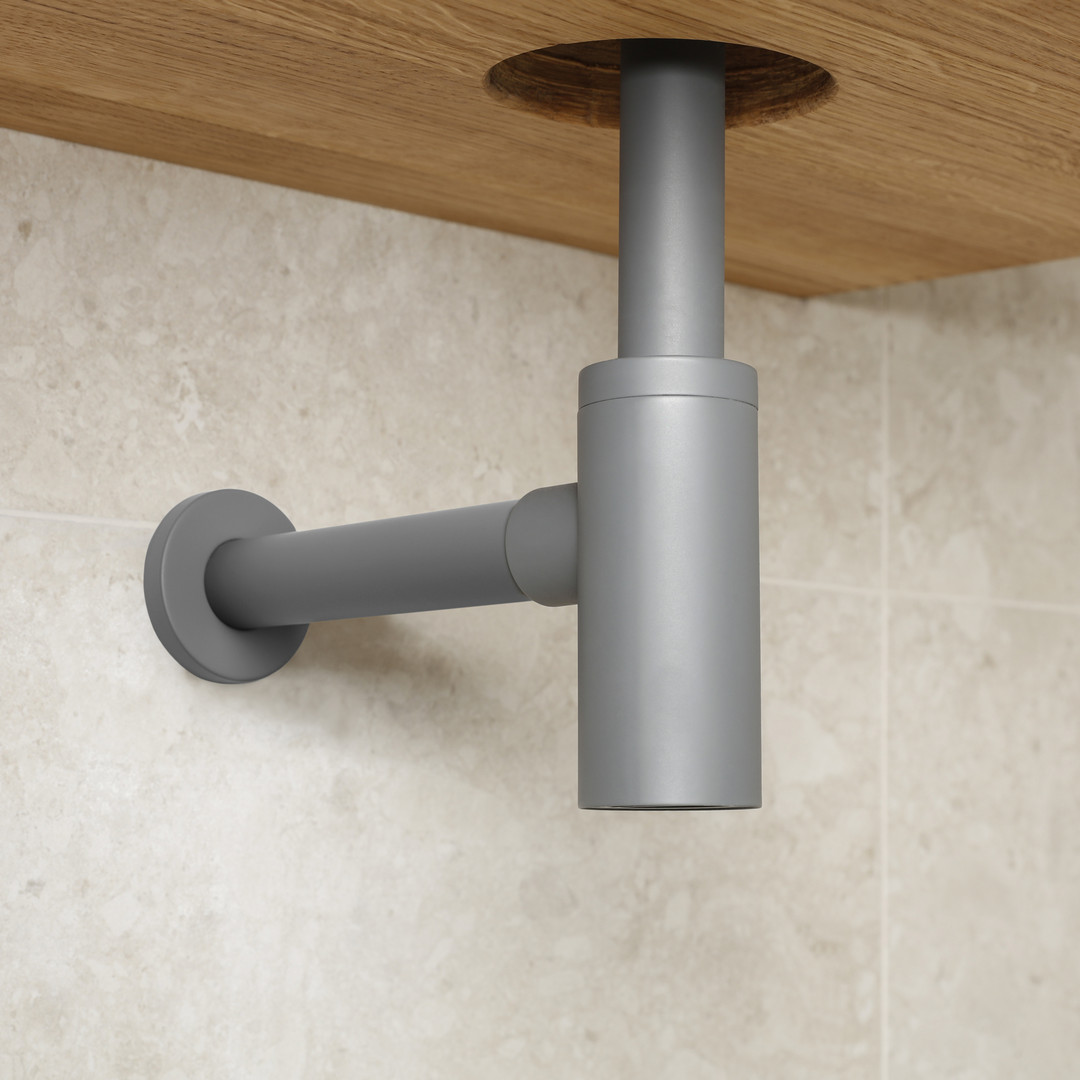 Herzbach Design-Geruchsverschluss Living 1 1/4", mit Reinigungsöffnung, grau matt