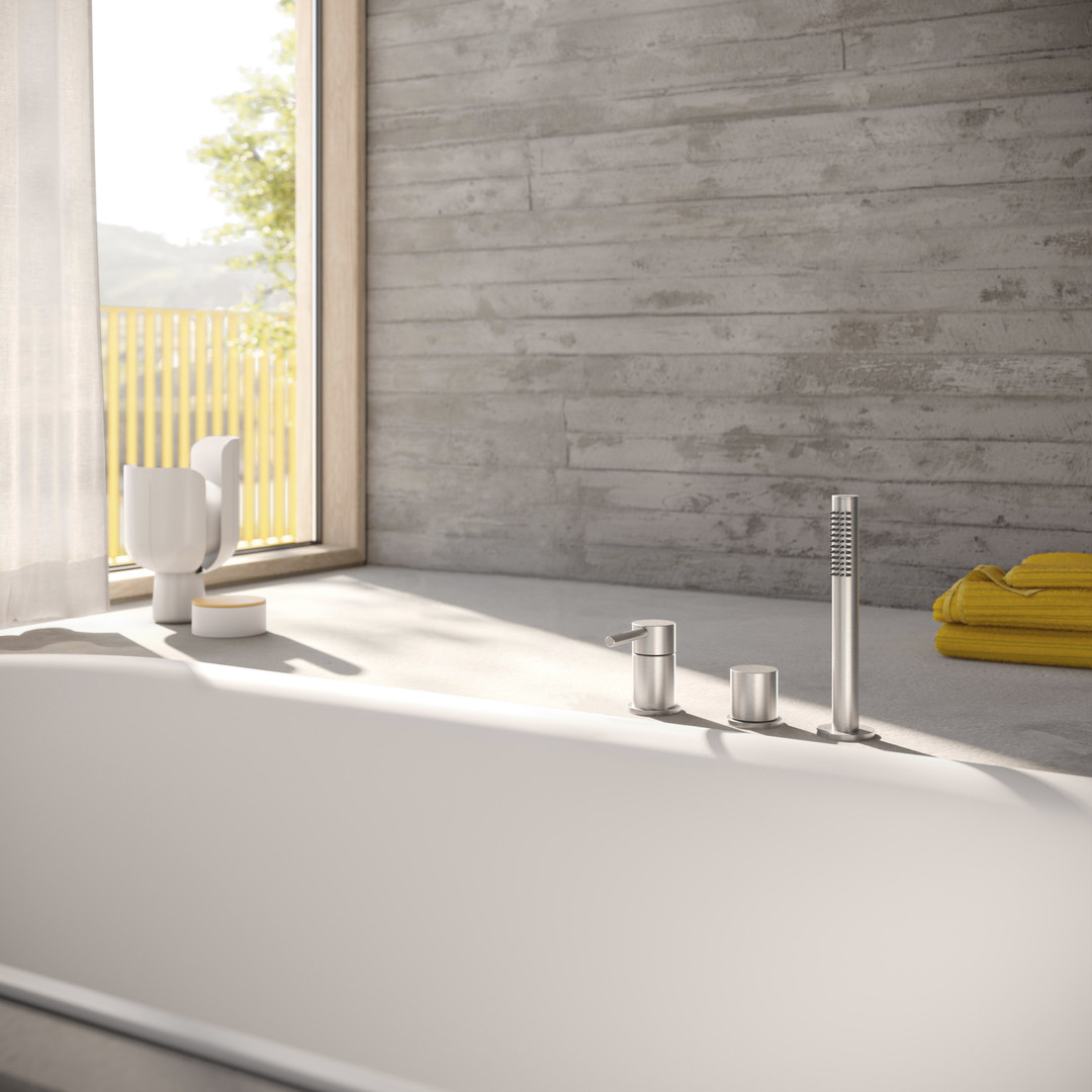 Herzbach Wannen-Dreiloch-Armatur Design iX Fliesen-/Wannenrandmontage, Edelstahl gebürstet W334786