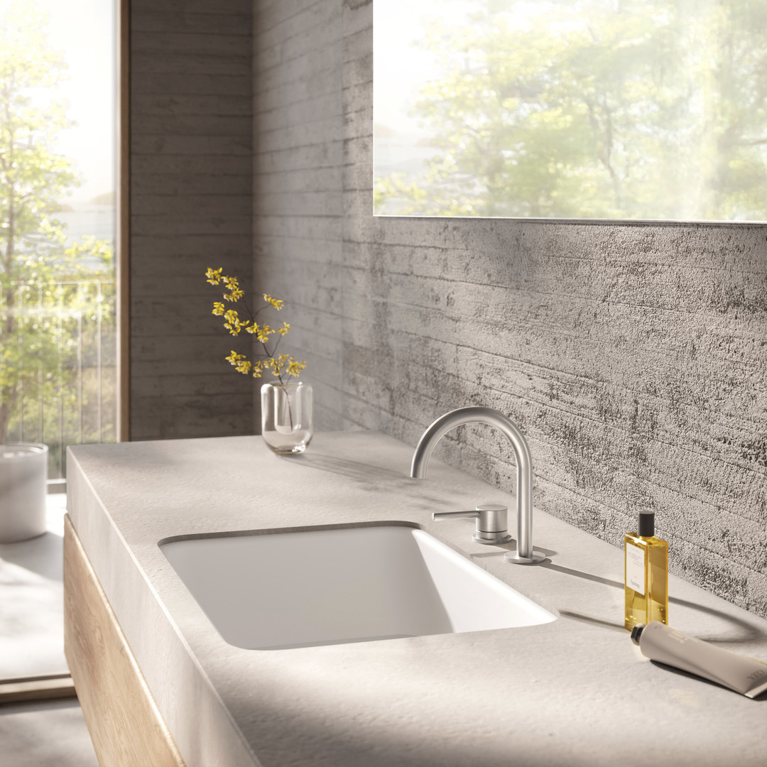 Herzbach Fertigmontageset Deep Waschtisch-Zweilocharmatur, 140mm, Edelstahl gebürstet