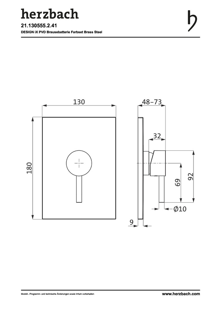 Herzbach Fertigmontageset Design iX PVD UP-Brause-Einhebelmischer, 180x130mm, Brass Steel