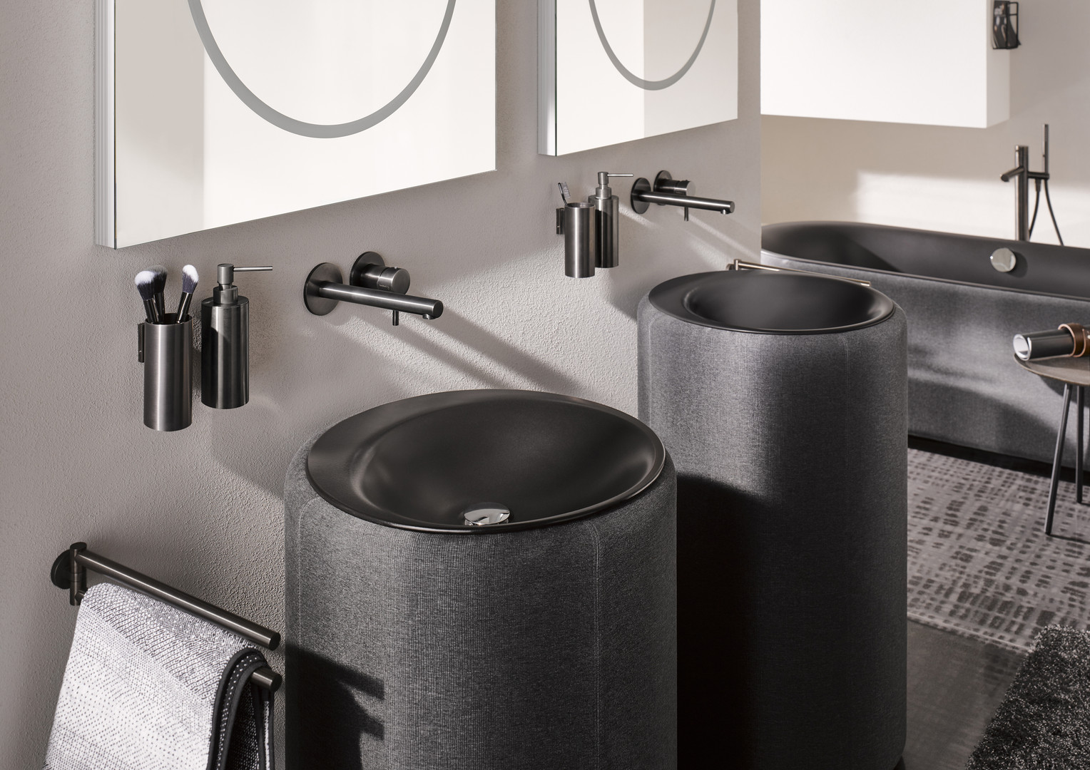 Herzbach Fertigmontageset Design iX PVD Waschtisch-Unterputzeinhebelmischer, 240mm, Black Steel 250948