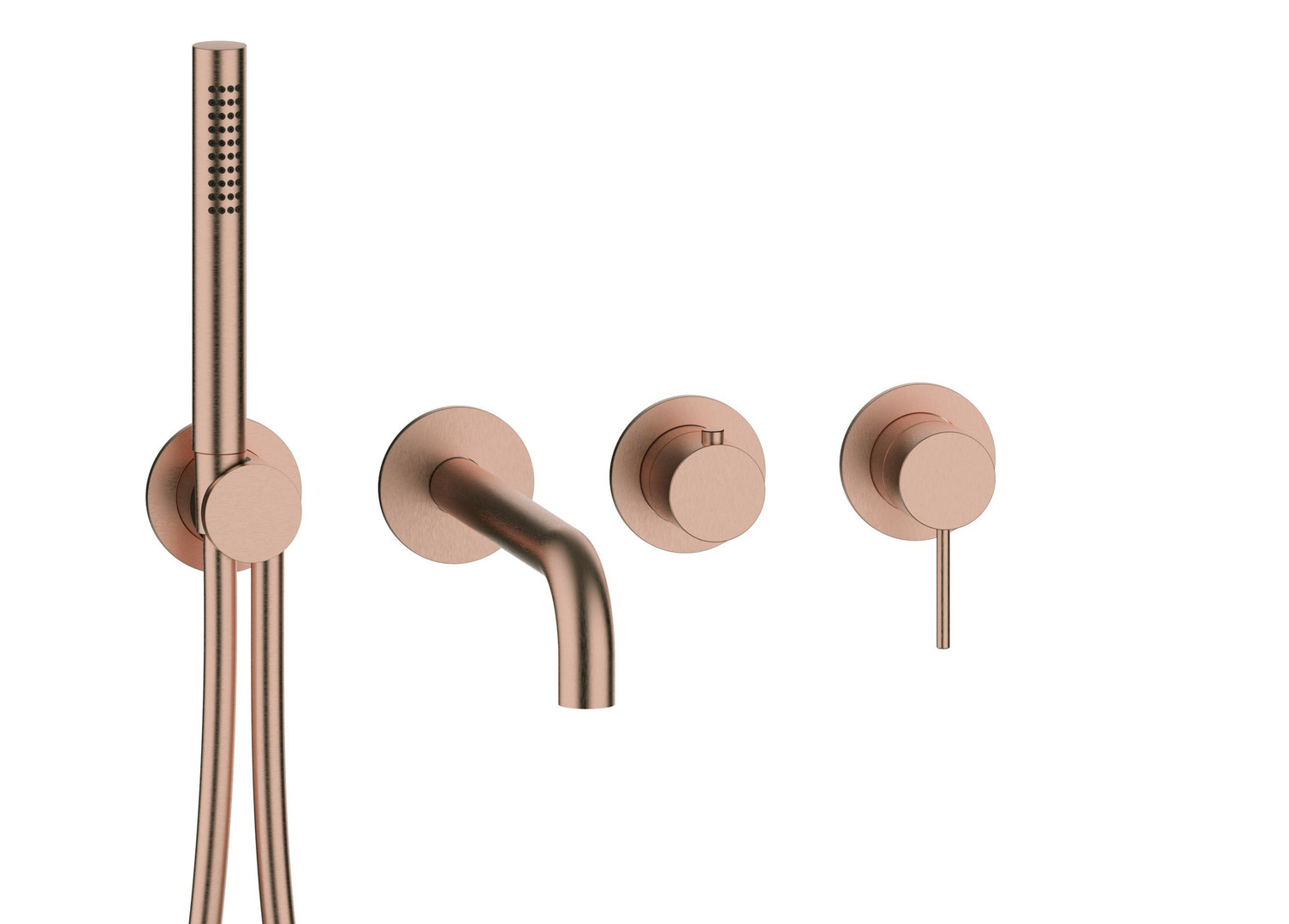 Herzbach Fertigmontageset MODUL7 Brause-Einhebelmischer, mit Wandauslauf und Stabhandbrause, 2 Verbraucher, copper Steel