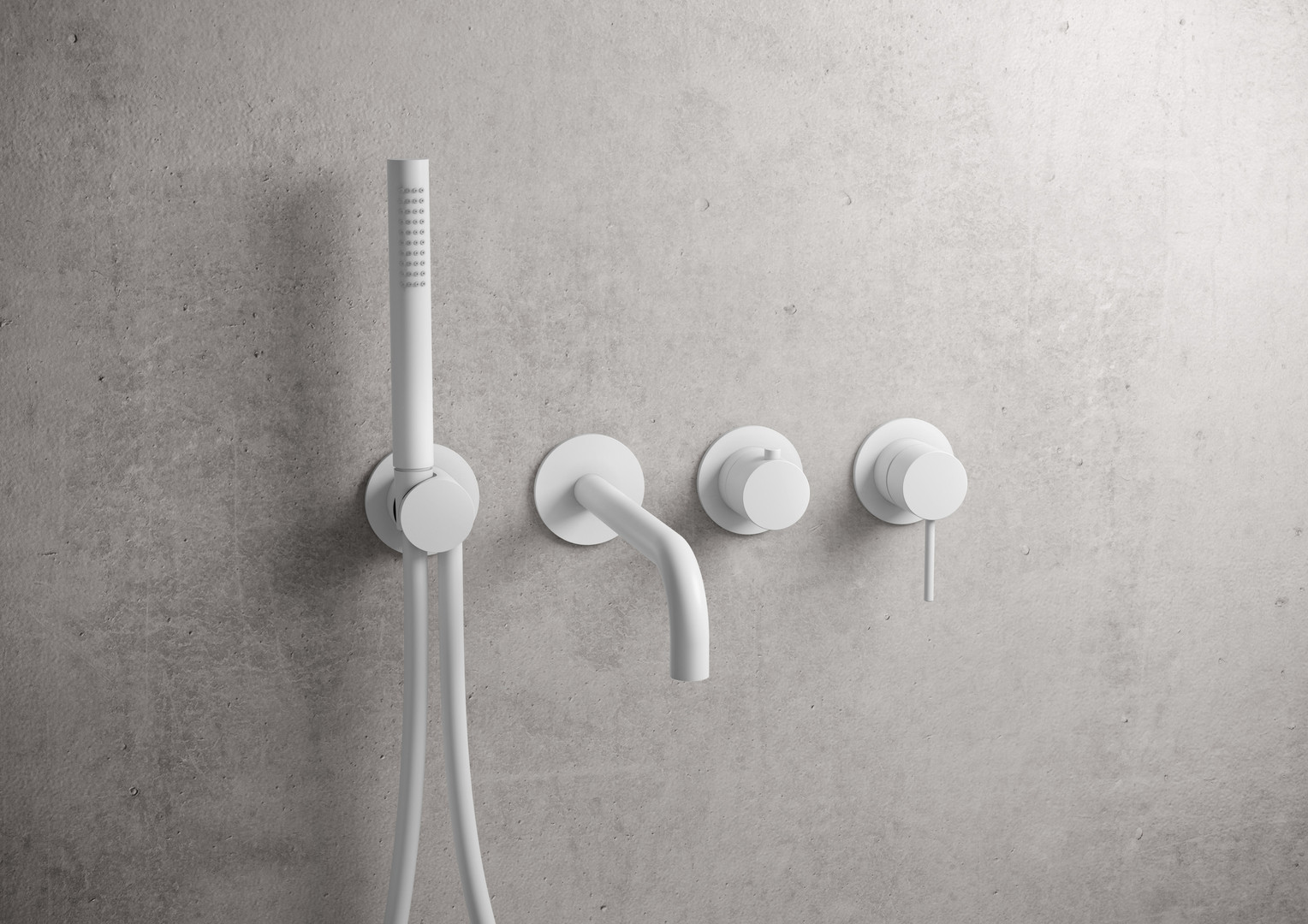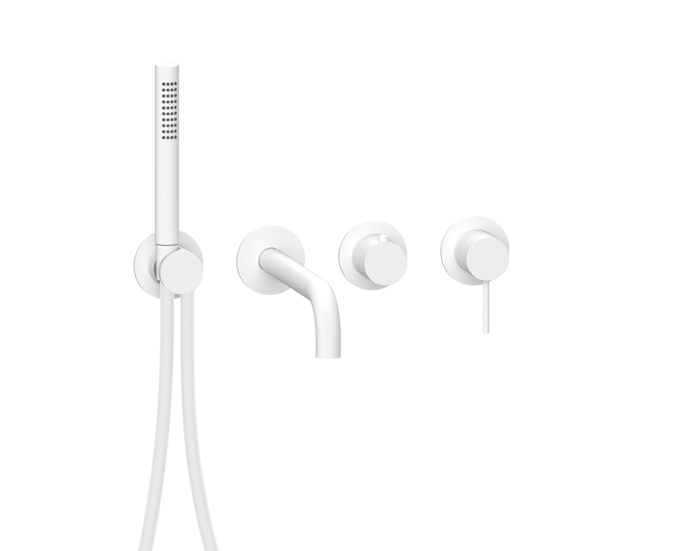 Herzbach Fertigmontageset MODUL7 Brause-Einhebelmischer, mit Wandauslauf und Stabhandbrause, 2 Verbraucher, weiß matt