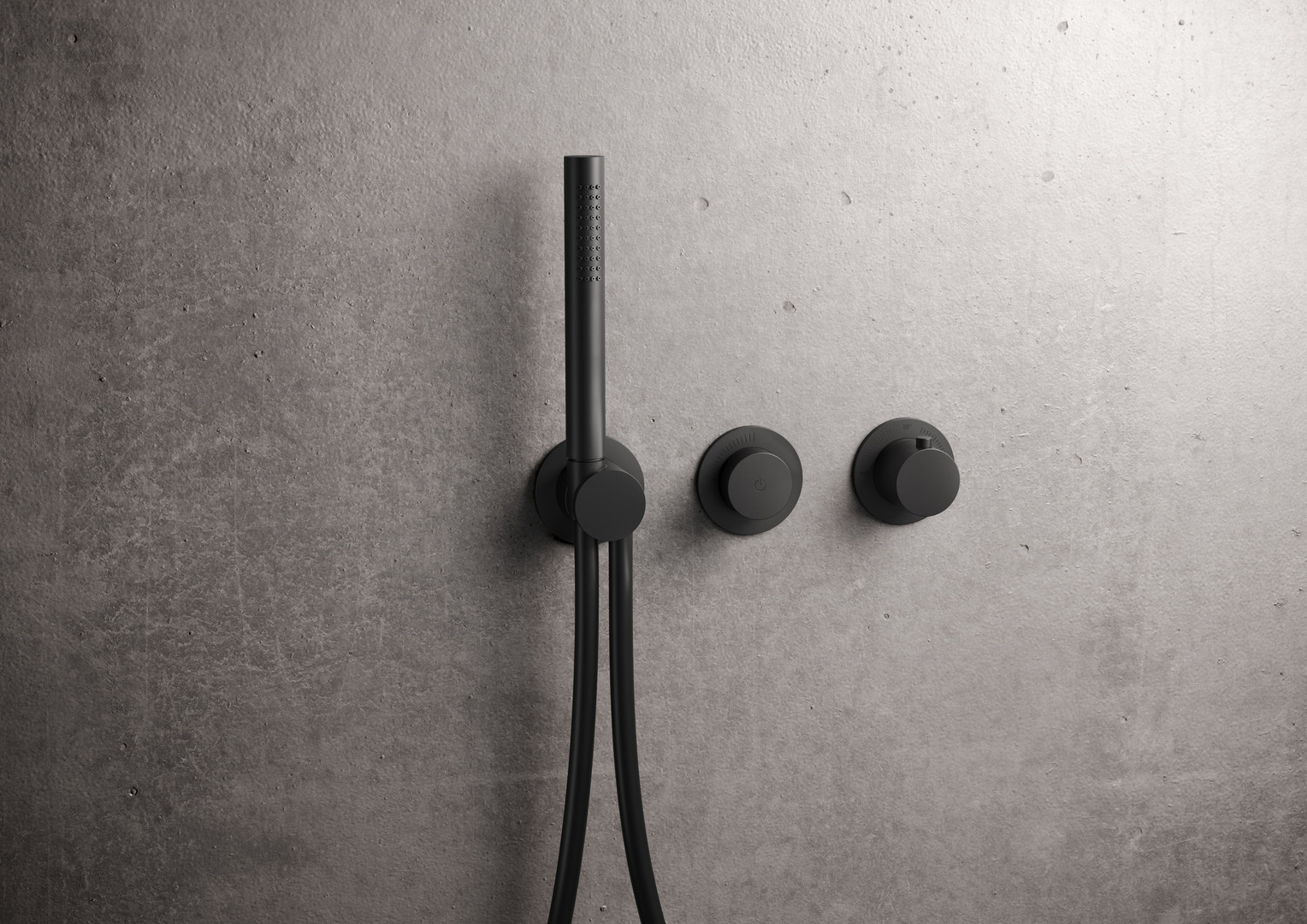 Herzbach Fertigmontageset MODUL7 PUSH Thermostat, mit Stabhandbrause, 1 Verbraucher, PVD absolut black W971248