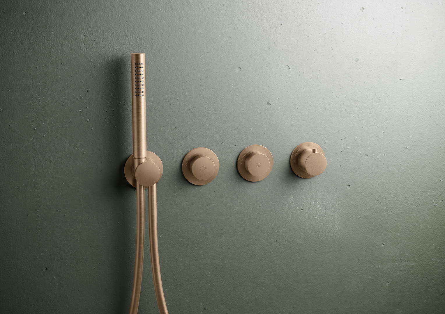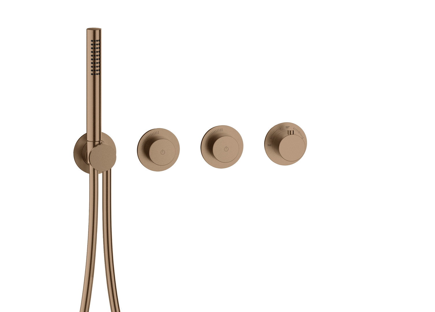 Herzbach Fertigmontageset MODUL7 PUSH Thermostat, mit Stabhandbrause, 2 Verbraucher, copper steel