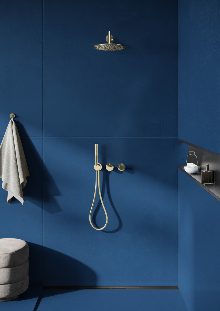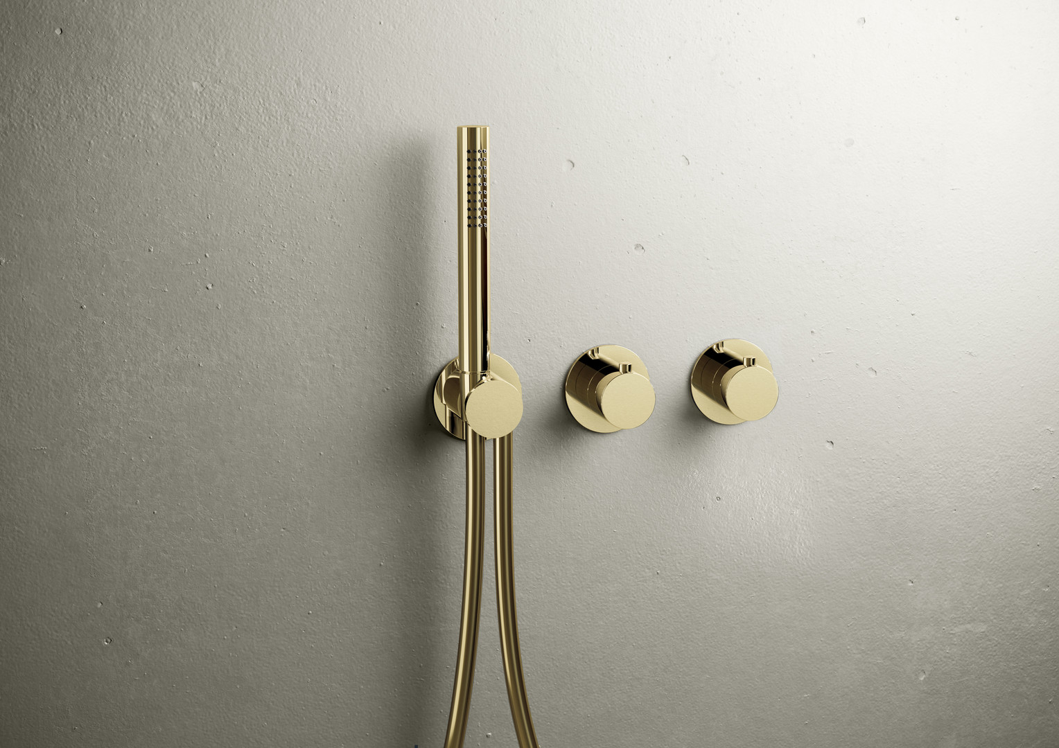 Herzbach Fertigmontageset MODUL7 Thermostat, mit Stabhandbrause, 2/3 Verbraucher, PVD Gold W335150