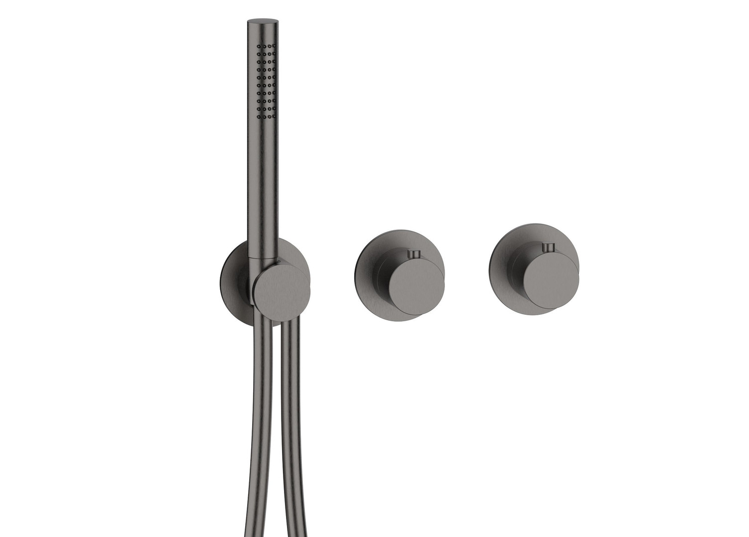 Herzbach Fertigmontageset MODUL7 Thermostat, mit Stabhandbrause, 2/3 Verbraucher, black Steel
