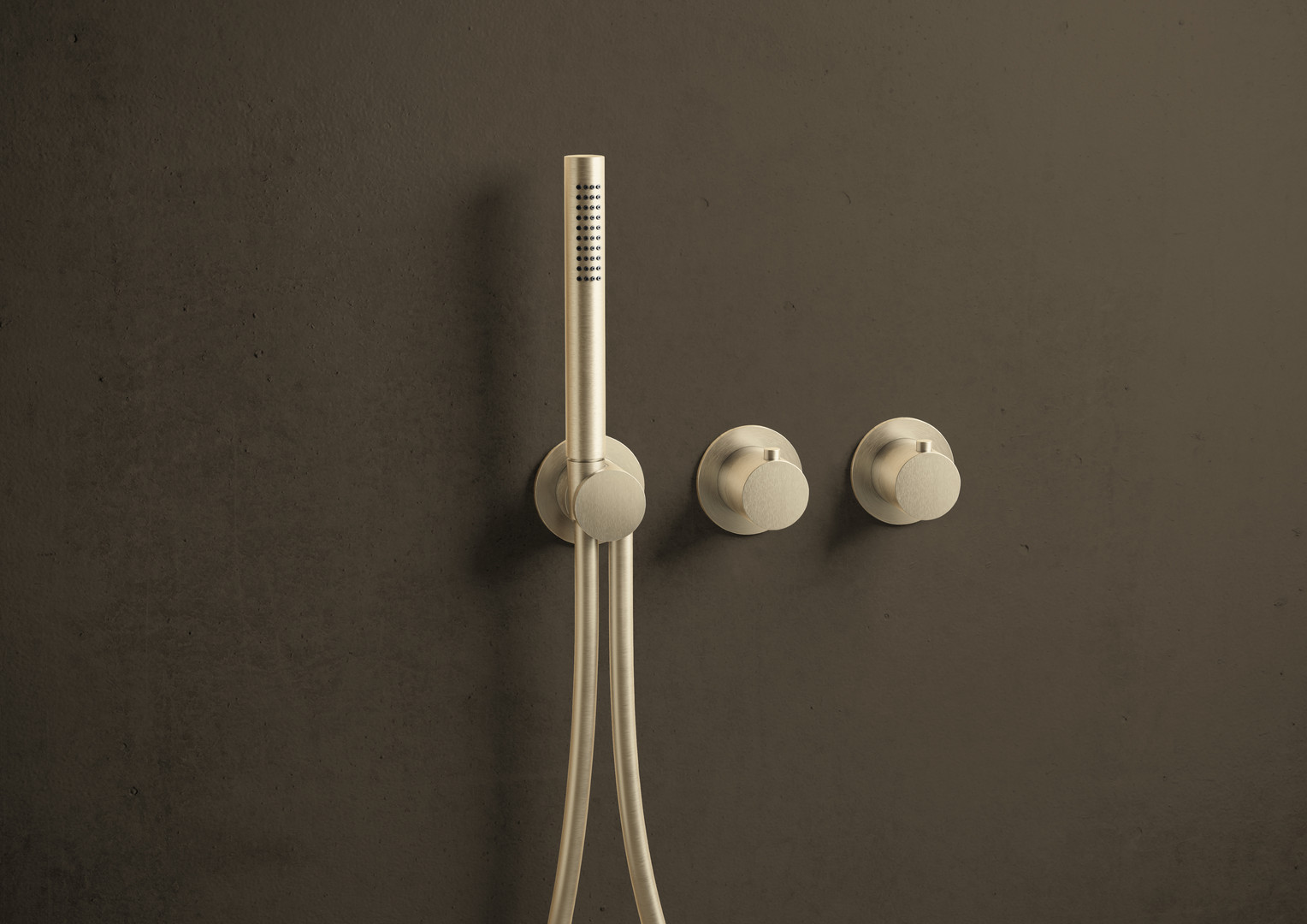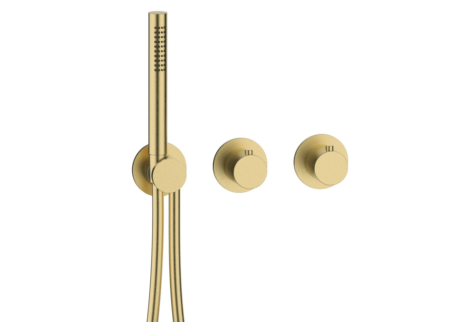 Herzbach Fertigmontageset MODUL7 Thermostat, mit Stabhandbrause, 2/3 Verbraucher, PVD Gold W335150
