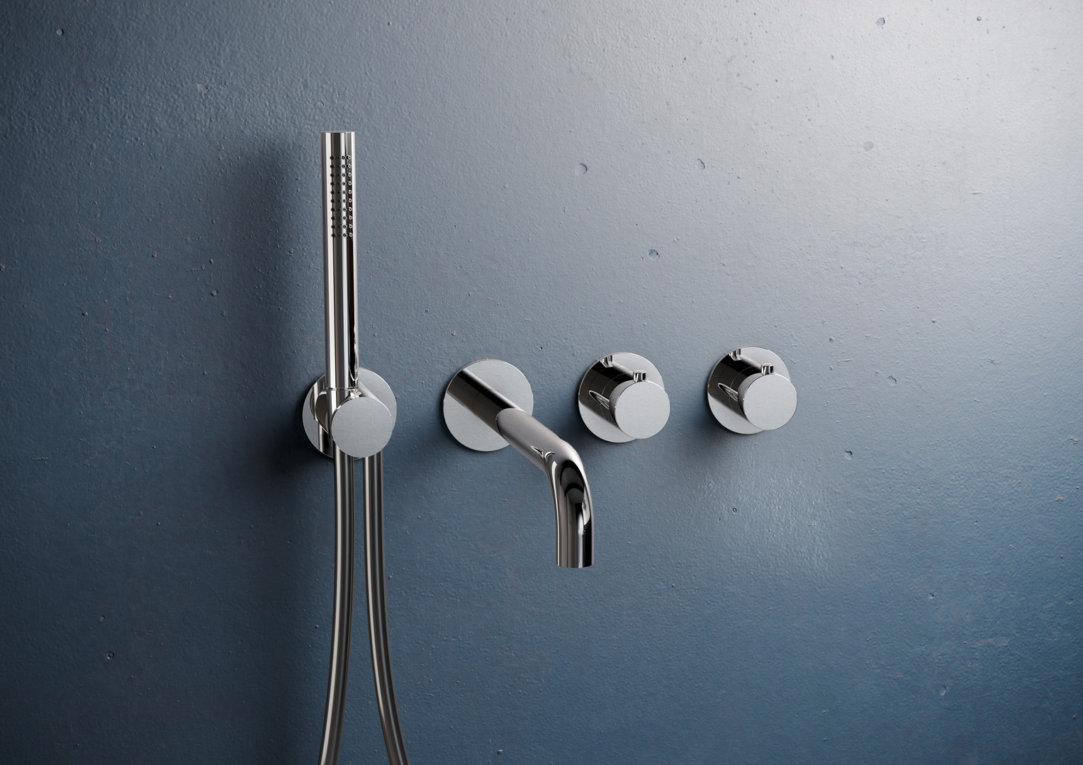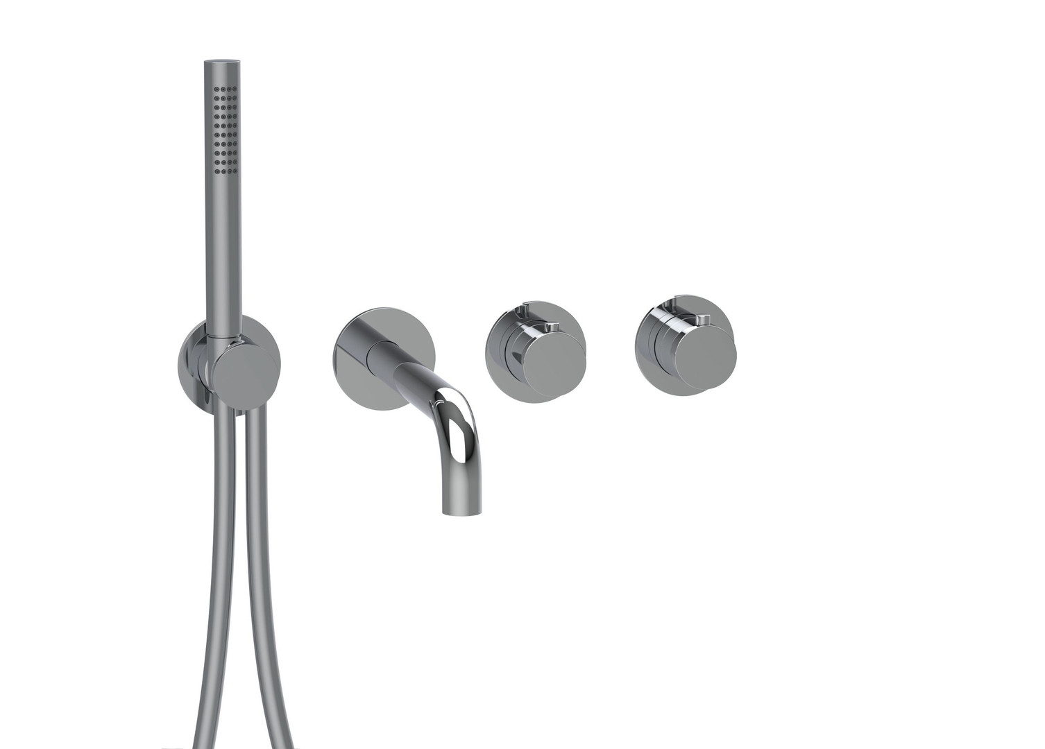 Herzbach Fertigmontageset MODUL7 Thermostat, mit Wandauslauf und Stabhandbrause, 2 Verbraucher, chrom