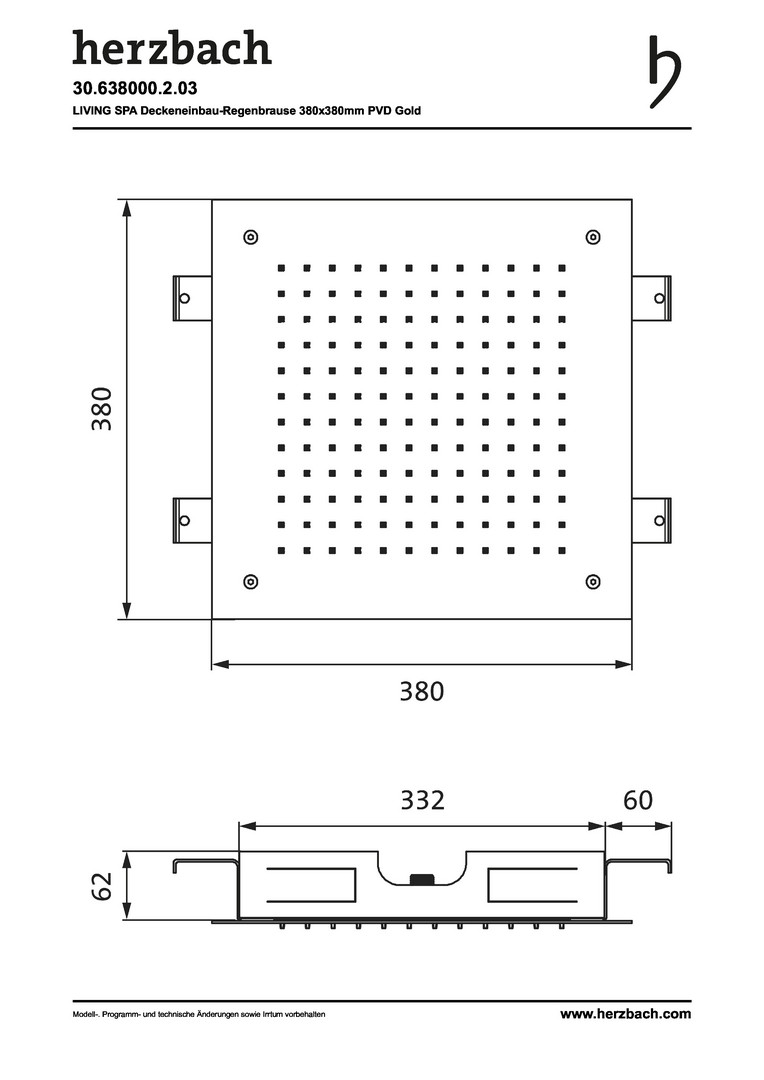 Herzbach Regenbrause Living Spa 380 x 380 mm, Deckeneinbau, 1-strahlig, PVD Gold W335927