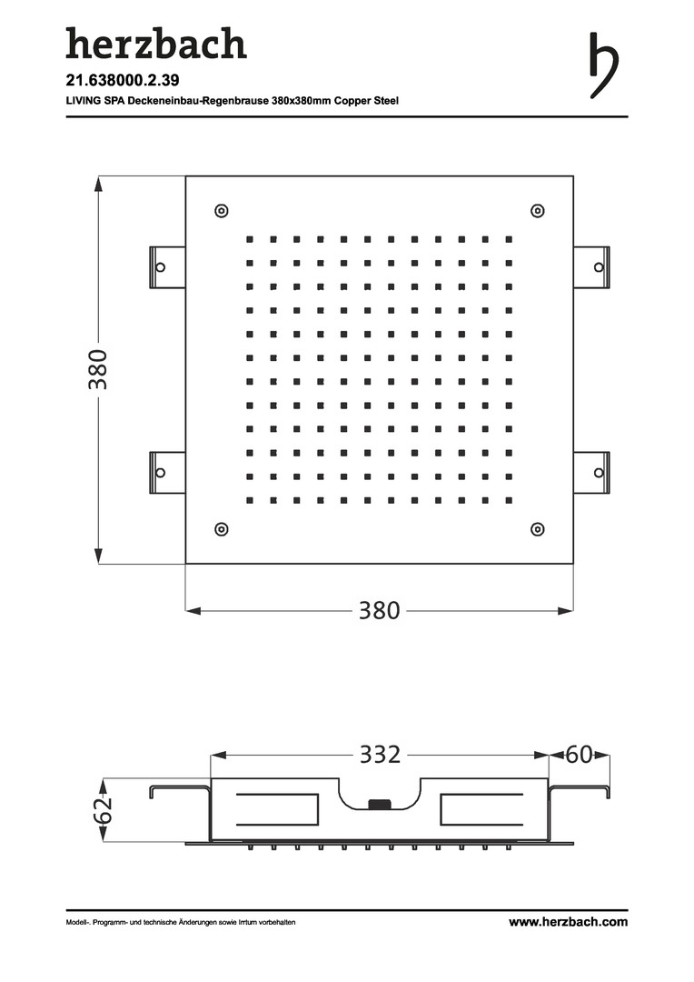 Herzbach Regenbrause Living Spa 380x380mm, Deckeneinbau, 1-strahlig, copper steel