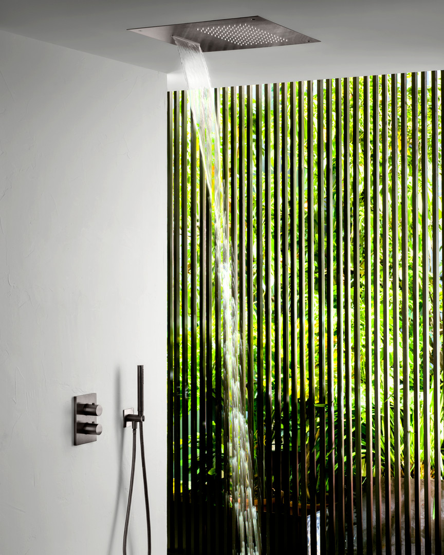 Herzbach Regenbrause Living Spa Multifunktion 2 500x500mm, Deckeneinbau, 2-strahlig, black steel 250943