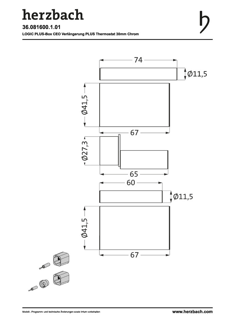 Herzbach UP-Verlängerung Logic Plus 30mm, nicht kürzbar, für Thermostate, soft, Chrom