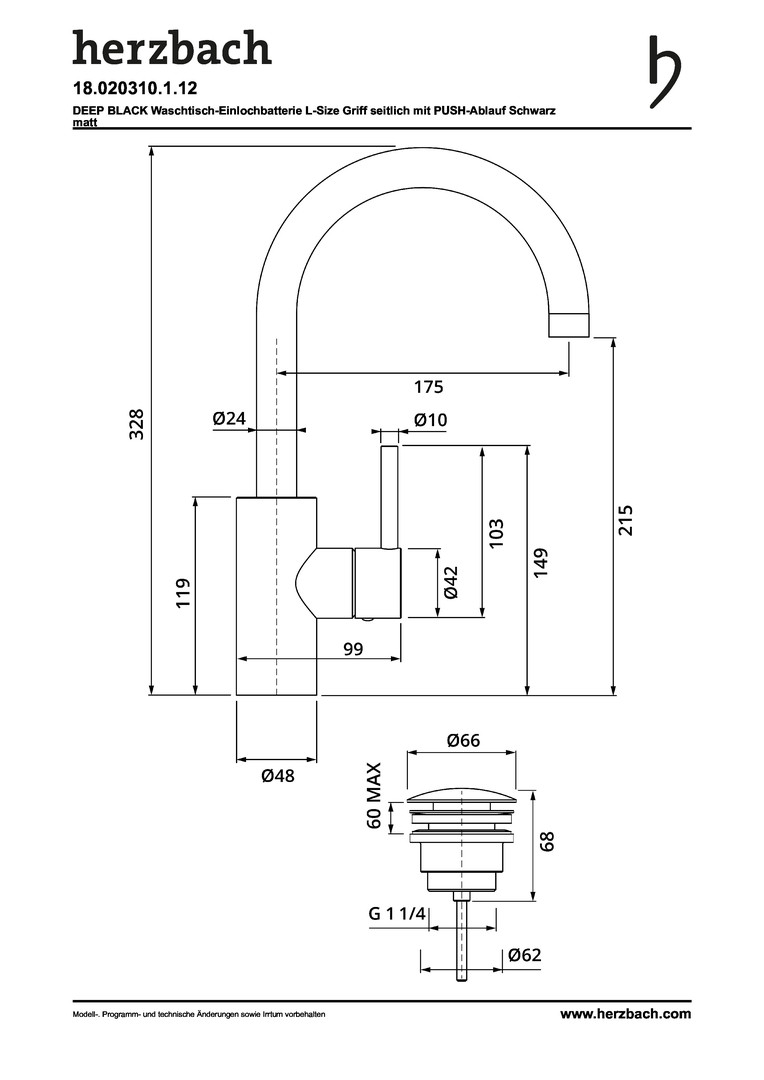 Herzbach Waschtisch-Einhebelmischer Deep L-Size, Schwarz matt