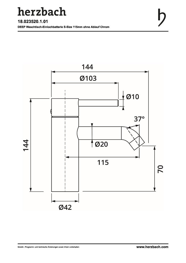 Herzbach Waschtisch-Einhebelmischer Deep S-Size, 115mm, ohne Ablaufgarnitur, Chrom