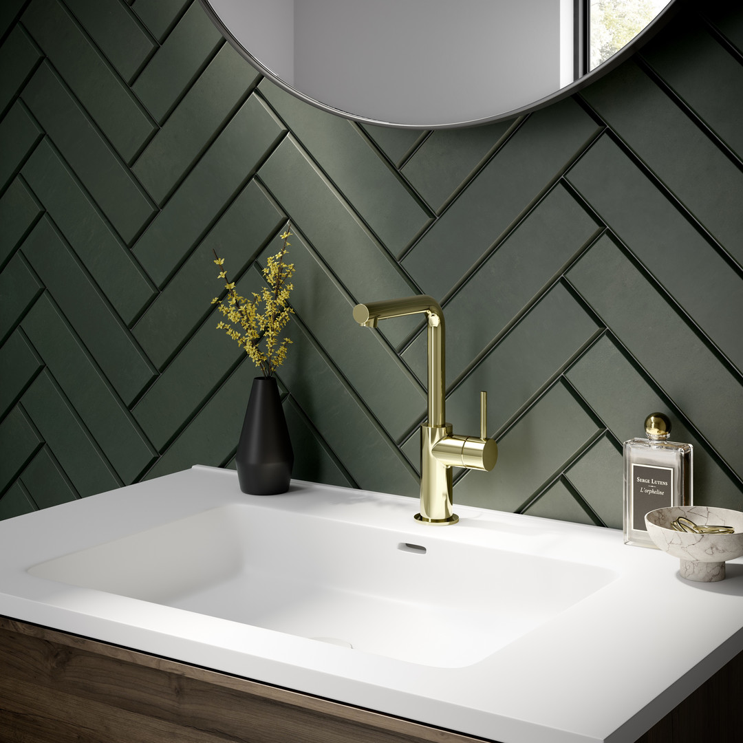 Herzbach Waschtisch-Einhebelmischer Siro L-Size mit schwenkbarem Auslauf 227cm, ohne Ablaufgarnitur, PVD gold W335350