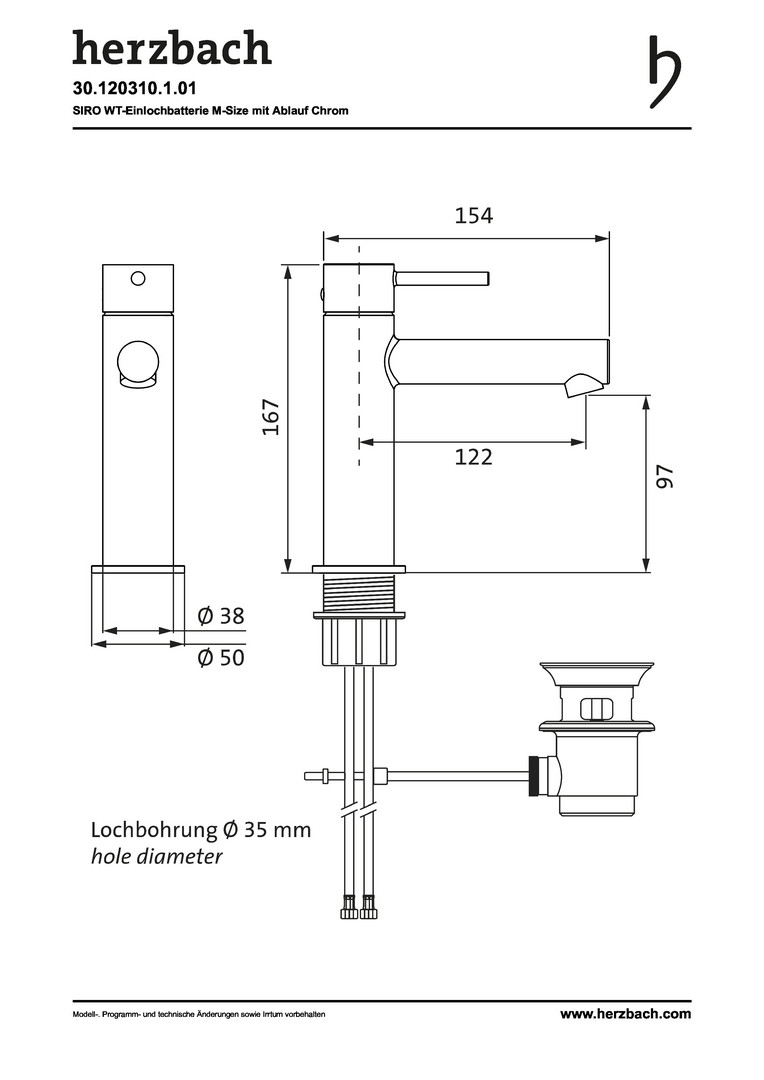 Herzbach Waschtisch-Einhebelmischer Siro M-Size mit Ablaufgarnitur, chrom