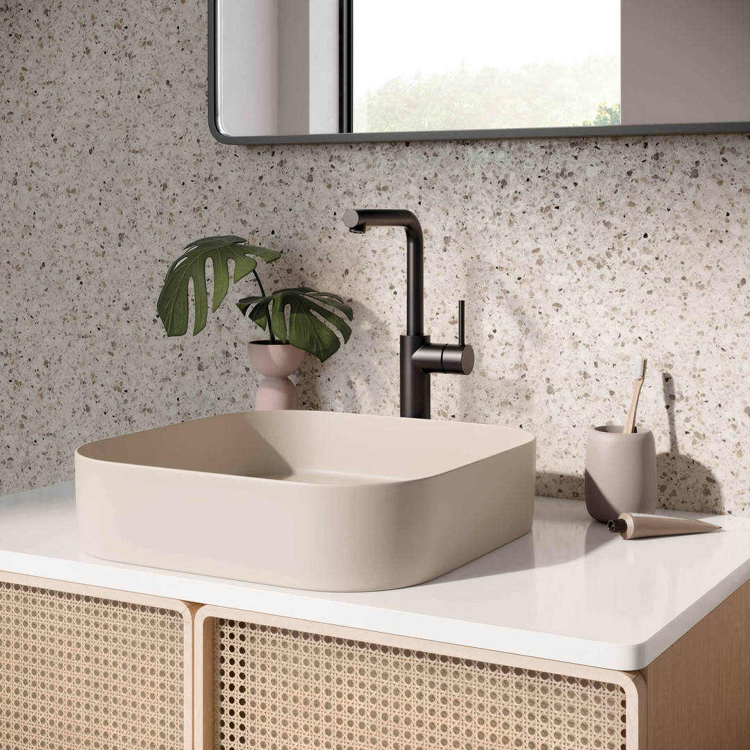 Herzbach Waschtisch-Einhebelmischer Siro XL-Size mit erhöhtem Schaft und schwenkbarem Auslauf, ohne Ablaufgarnitur, schwarz matt
