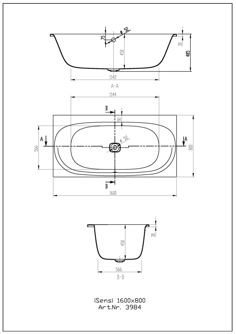 Hoesch Badewanne iSENSI Rechteck, 160 x 80 cm, 155 l